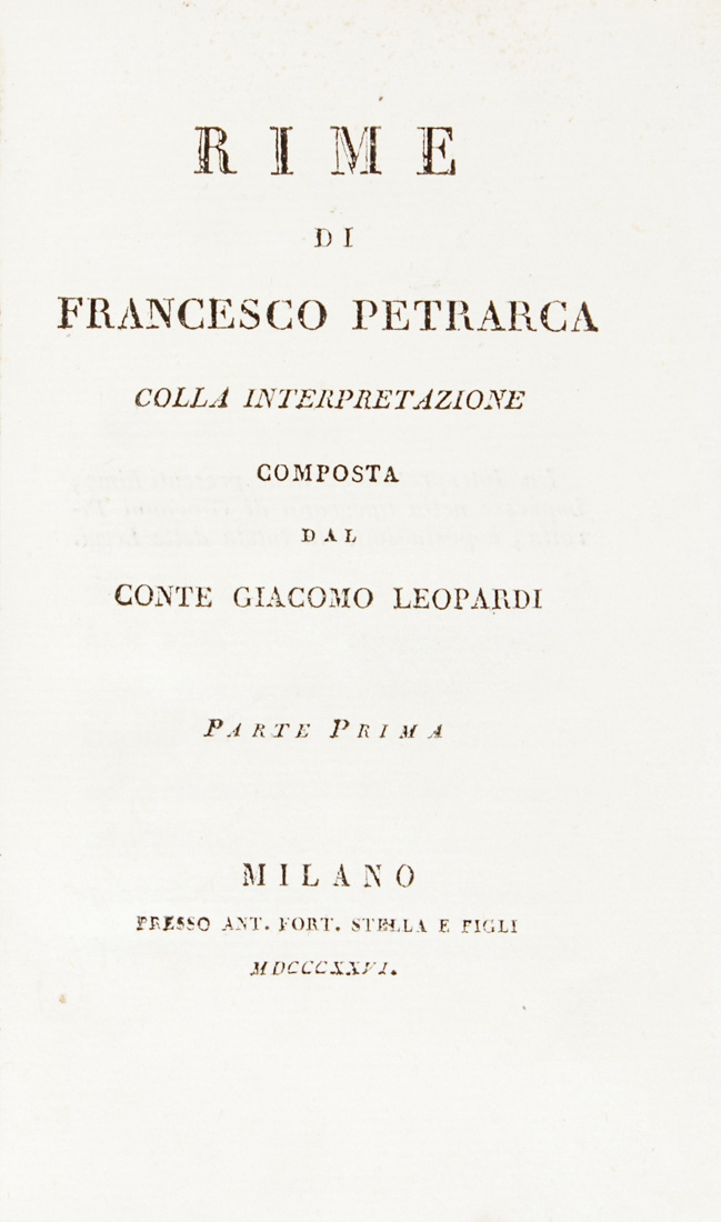 Petrarca Francesco, Rime […] colla interpretazione composta dal conte Giacomo Leopardi. Parte prima [-seconda].