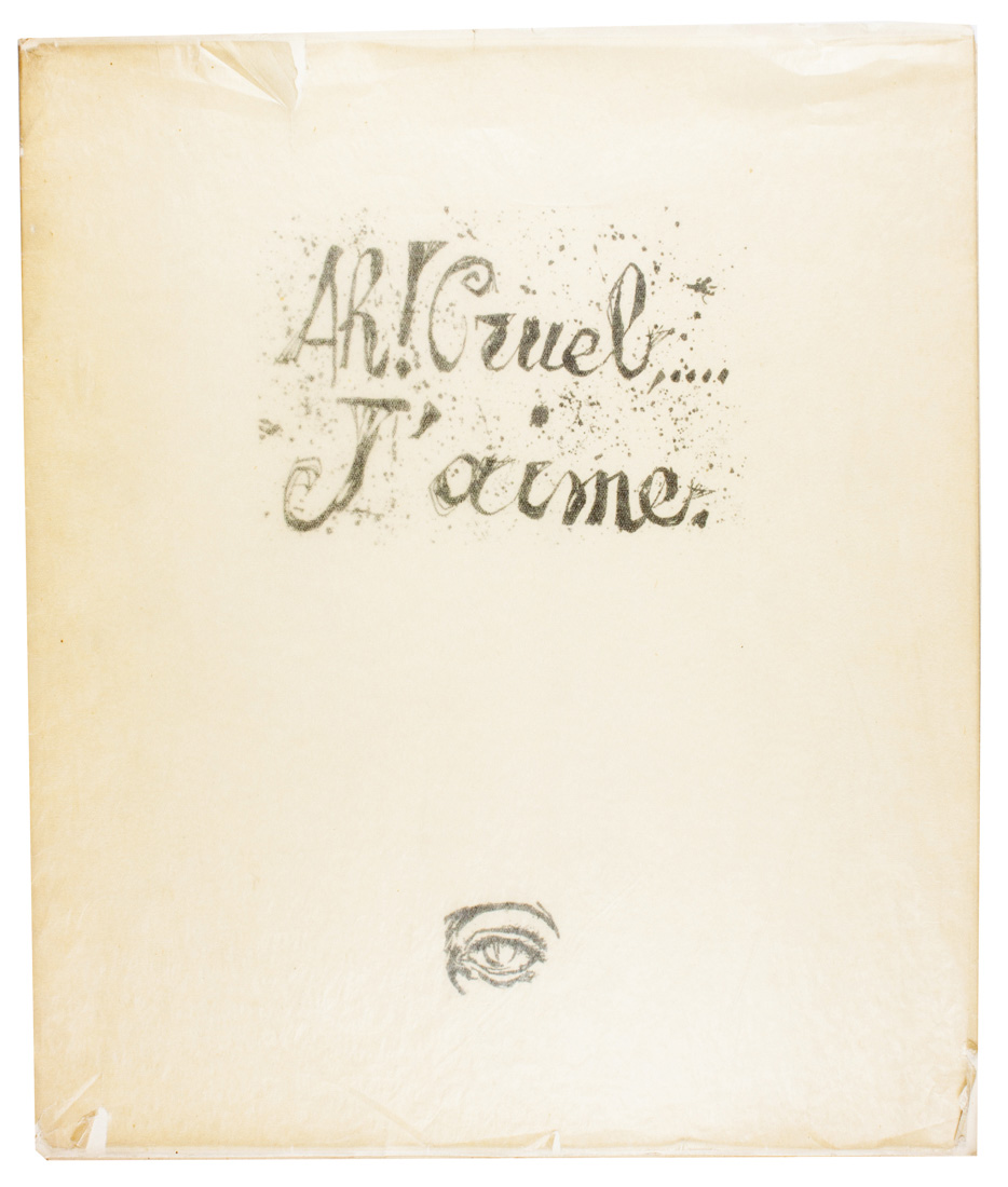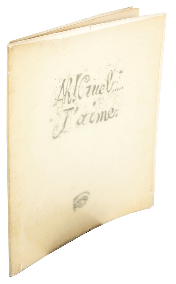 In-4° (mm 332x272). Carte [16] a fogli sciolti con 7 litografie originali acquerellate di Del Prato e Polidori a piena pagina, tutte firmate e datate a matita. Esemplare n.90/135 su una tiratura complessiva a 145 copie, con la firma autografa di Ungaretti sulla carta bianca. Minimi difetti. Cartella editoriale in cartoncino protetta da velina con il titolo «Ah! Cruel,... J'aime» stampato al piatto anteriore.