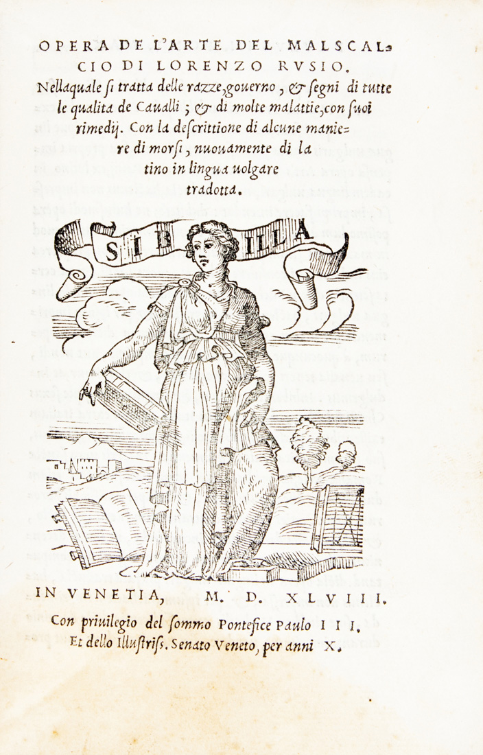 Rusio Lorenzo, Opera de l'arte del malscalcio [...] nellaquale (sic!) si tratta delle razze, governo, e segni di tutte le qualità de Cavalli...