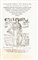 In-8° (mm 157x100). Carte 102, [6], l'utima bianca. Marca dello stampatore incisa in legno al frontespizio, ripetuta in fine, spazio per capilettera con letterine-guida. Esemplare un po' rifilato nel margine superiore e con un'ampia macchia d'unto in principio ma buona copia. Legatura ottocentesca in piena pergamena con titoli manoscritti al dorso. Ex-libris con gli emblemi del Regno di Cipro, Gerusalemme e Armenia applicato al contropiatto.