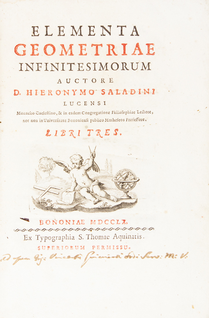Lot 313 | Saladini Girolamo, Elementa geometriae infinitesimorum...Bononiae: ex...