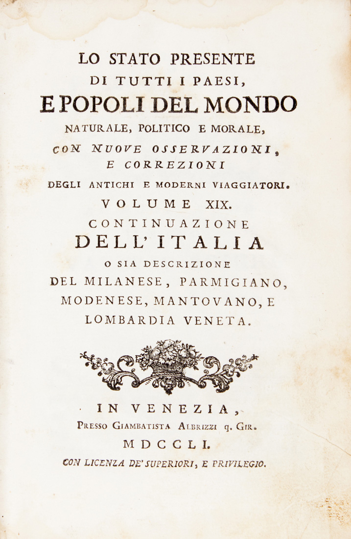 Salmon Thomas, Lo stato presente di tutti i paesi e popoli del mondo naturale, politico, e morale [...]. Volume XIX [...] o sia descrizione del milanese, parmigiano, modenese, mantovano e Lombardia veneta.