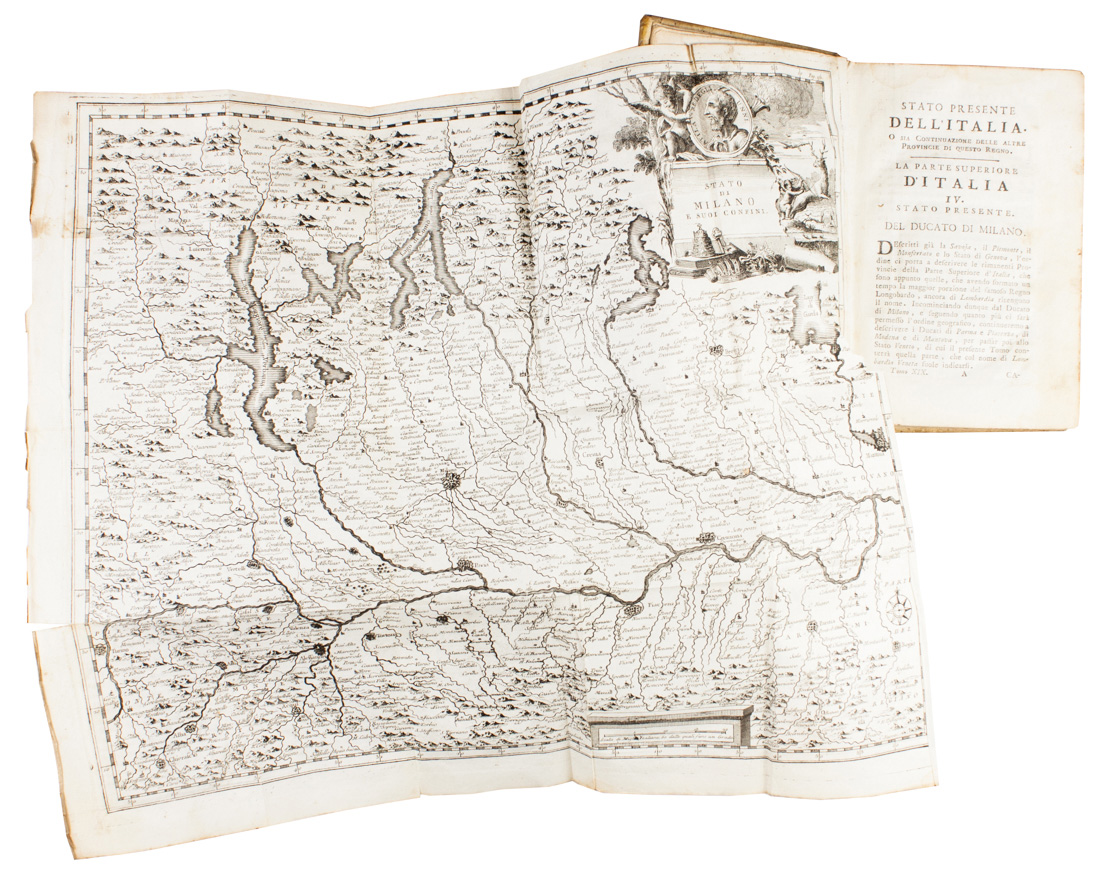 In-8° (mm 180x110). Pagine [16], 574, [2] e 38 tavole calcografiche fuori testo. Antiporta incisa in rame e frontespizio con marca xilografica. Restauri e piccoli strappi ad alcune delle tavole ripiegate, alcune fioriture e gore d'acqua marginali. Legatura coeva in piena pergamena rigida con tassello con titoli al dorso. Vistose macchie e abrasioni ai piatti e al dorso. Nota manoscritta alla sguardia anteriore.