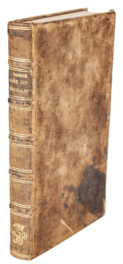 In-8° (mm 170x95). Pagine [2], I-V, [1], 6-345, [3]. Qualche brunitura sparsa e alcune risibili lacune nel testo dovute all'ossidazione dell'inchiostro. Legatura coeva in pieno vitello maculato con titoli dorati su tassello e monogramma nobiliare impresso in oro al dorso. Spellature e alcune macchie ai piatti.