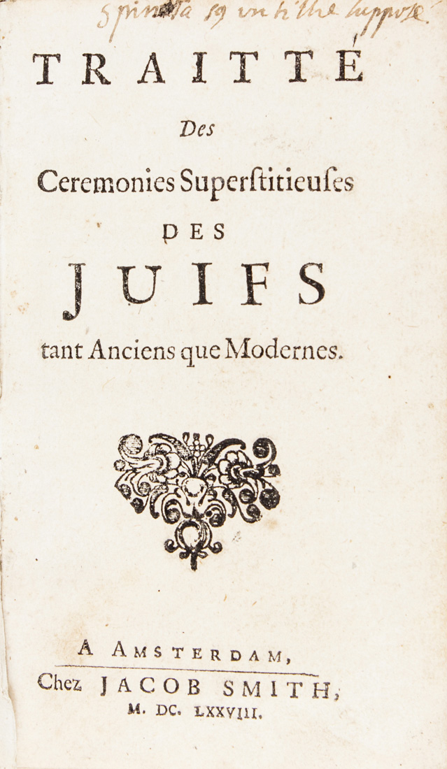 Spinoza Baruch, Traitté des Ceremonies Superstitieuses des Juifs tant Anciens que Modernes.