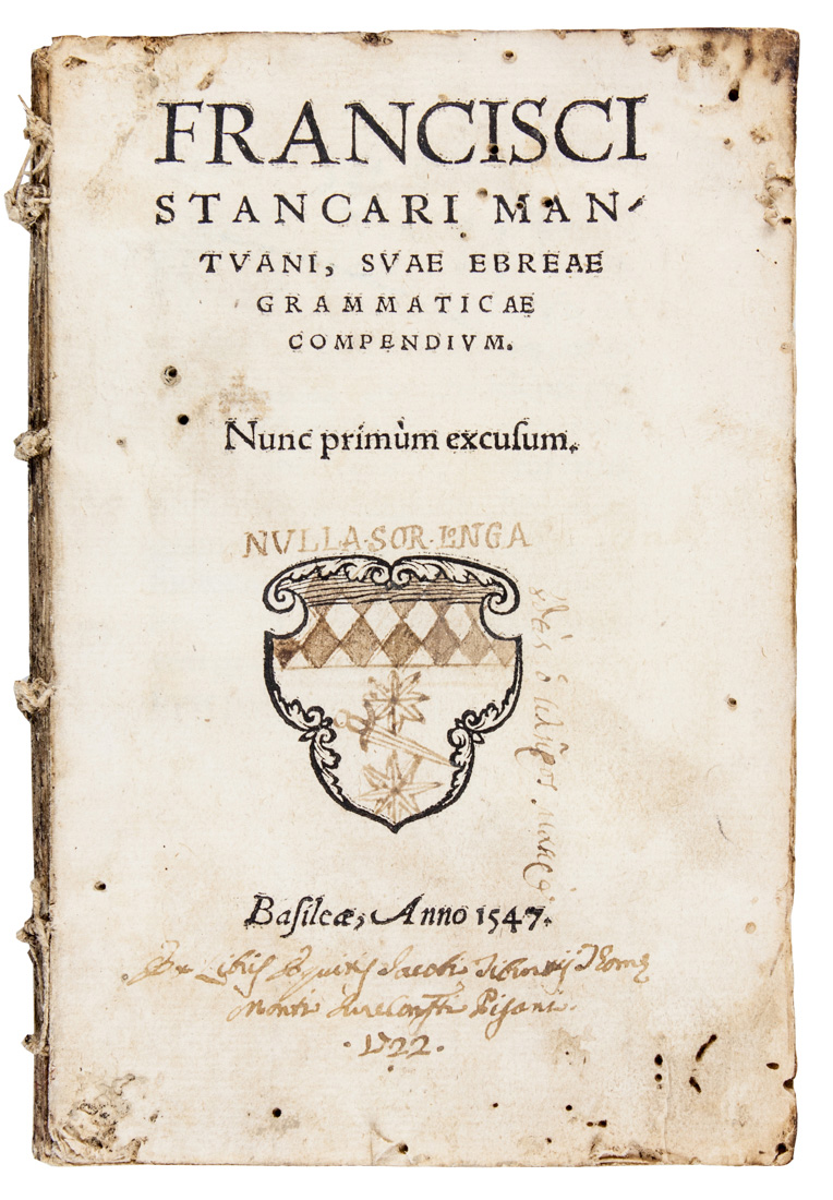 Stancari Francesco, Ebreae grammaticae institutio [...]. Adiuncta sunt haec, ab eodem autore: Rerum omnium capita. Exercitatiuncula catholica. Et suae grammaticae compendium. Nunc primum in lucem aedita.