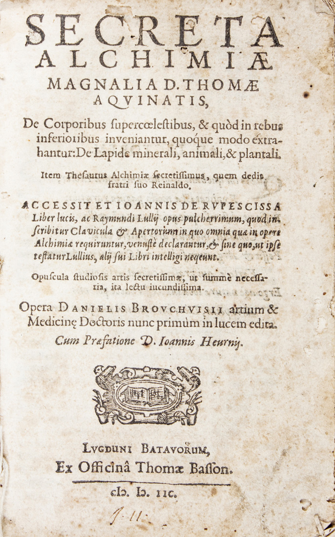 Tommaso d'Aquino (santo), Secreta alchimiae [...] accessit et Ioannis de Rupescissa Liber lucis ac Raymundi Lullij opus pulcherrimum [...]. Opera Danielis Brouchvisii...
