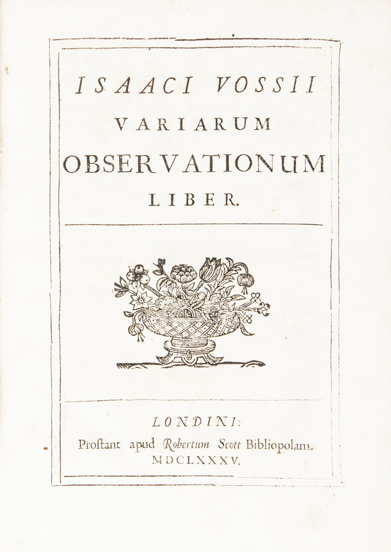 Vossius Isaac, Variarum Observationum Liber.Londini: Prostant apud Robertum...