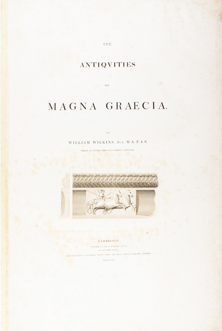 Wilkins William, The Antiquities of Magna Graecia.Cambridge: Printed at the...