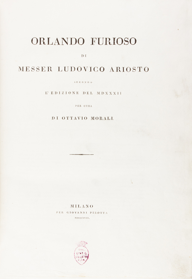 Ariosto Ludovico, Orlando Furioso [...] secondo l'edizione del 1532 per cura di Ottavio Morali.