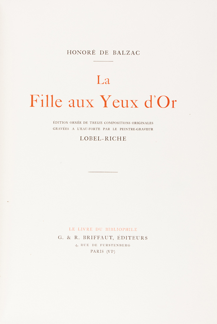 Balzac Honoré (de), La fille aux yeux d'or. Édition ornée de treize compositions originales gravées a l'eau-forte par le peintre-graveur Lobel-Riche.