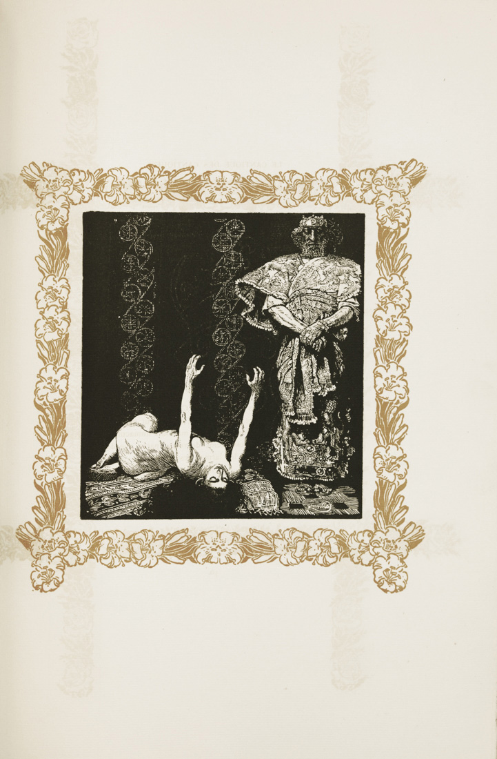In-folio (mm 445x320). Pagine 82, [2] con 4 xilografie a piena pagina, capilettera, testatine, finalini e cornici di ghirlande floreali al testo incise in legno da Frantisek Kupka. Copia n. 100 su una tiratura complessiva di 517 esemplari, uno dei 500 su papier de Hollande à la forme. Bellissimo esemplare in barbe e internamente in perfetto stato di conservazione. Brossura originale in cartonato con riproposizione del frontespizio al piatto anteriore, titoli impressi al dorso e piccolo fregio al piatto posteriore. Dorso con minimi restauri.