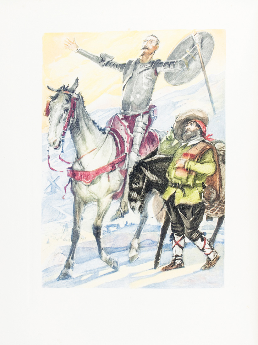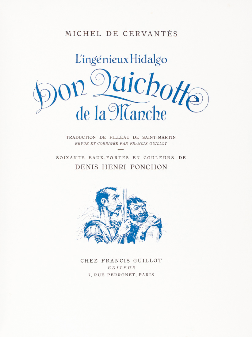 Cervantes Saavedra Miguel (de), L'ingenieux Hidalgo Don Quichotte de la Manche [...]. Soixante eaux-fortes en couleurs de Denis Henri Ponchon.