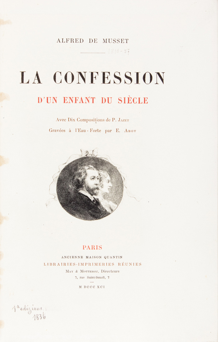 De Musset Alfred, La confession d’un enfant du siècle. Avec dix compositions de P. Jazet gravées à l'eaux-forte par E. Abot.