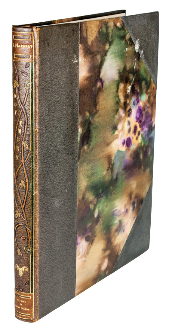 In-4° (mm 305x245). Pagine [8], 118, [8] con 21 acqueforti e puntesecche di Chahine, di cui 11 a piena pagina. Esemplare n. 191, uno dei 150 su vélin d'Arches su una tiratura limitata a 238 copie, con un solo stato delle acqueforti. Legatura mosaicata firmata Capelle in marocchino oliva con tralci di vite realizzati a intarsio al dorso; brossura editoriale conservata. Entro custodia in cartonato marmorizzato.