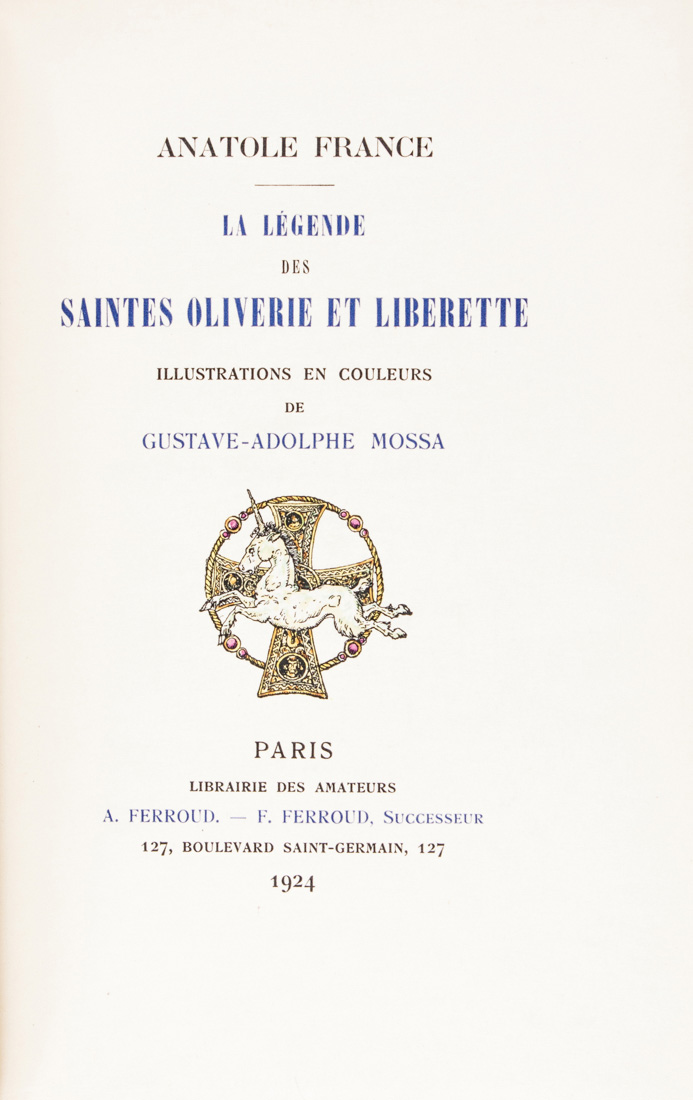 France Anatole, La légende des Saintes Oliverie et Liberette. Illustrations en couleurs de Gustave Adolphe Mossa.