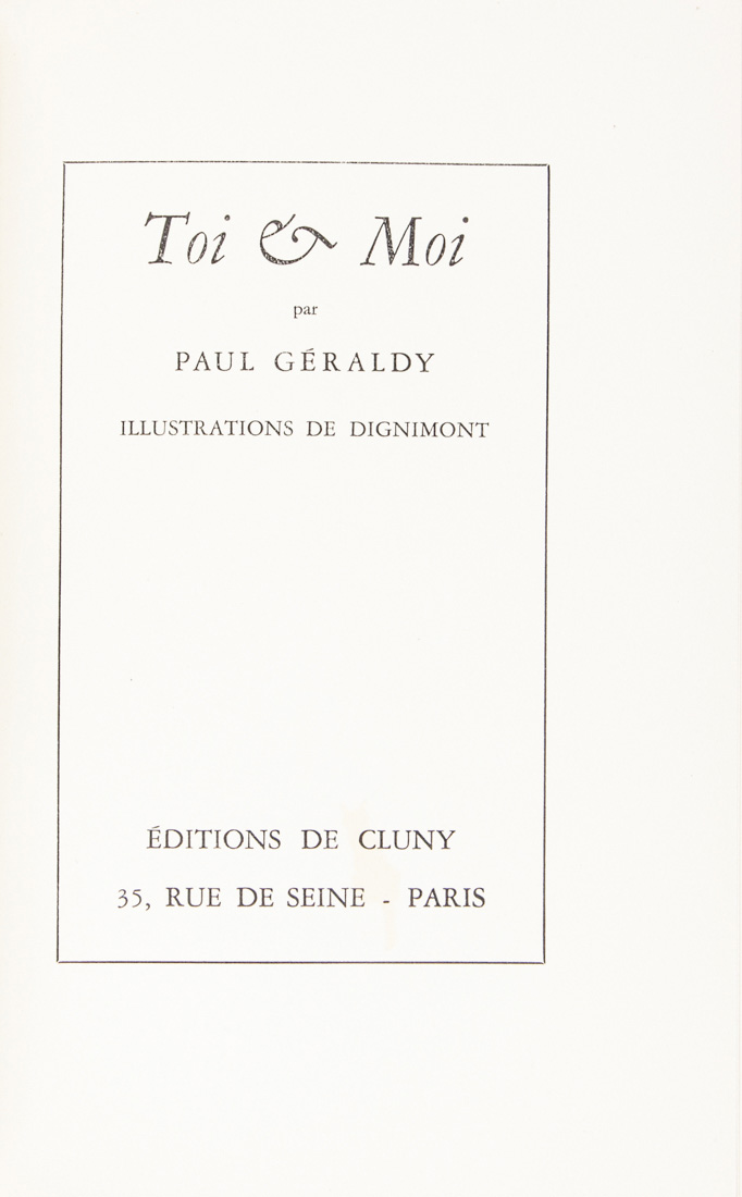 Géraldy Paul, Toi & Moi.Paris: Éditions de Cluny, [1937].In-8° (mm...