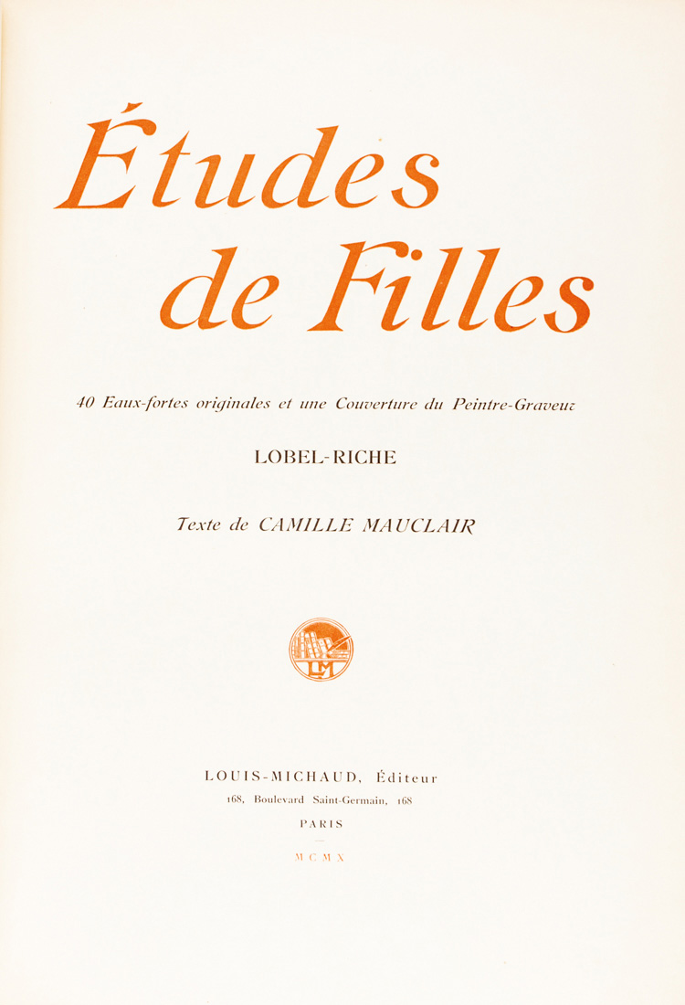 Mauclair Camille, Etudes de filles. 40 eaux-fortes originales et une couverture du Peintre-Graveuz de Lobel-Riche.