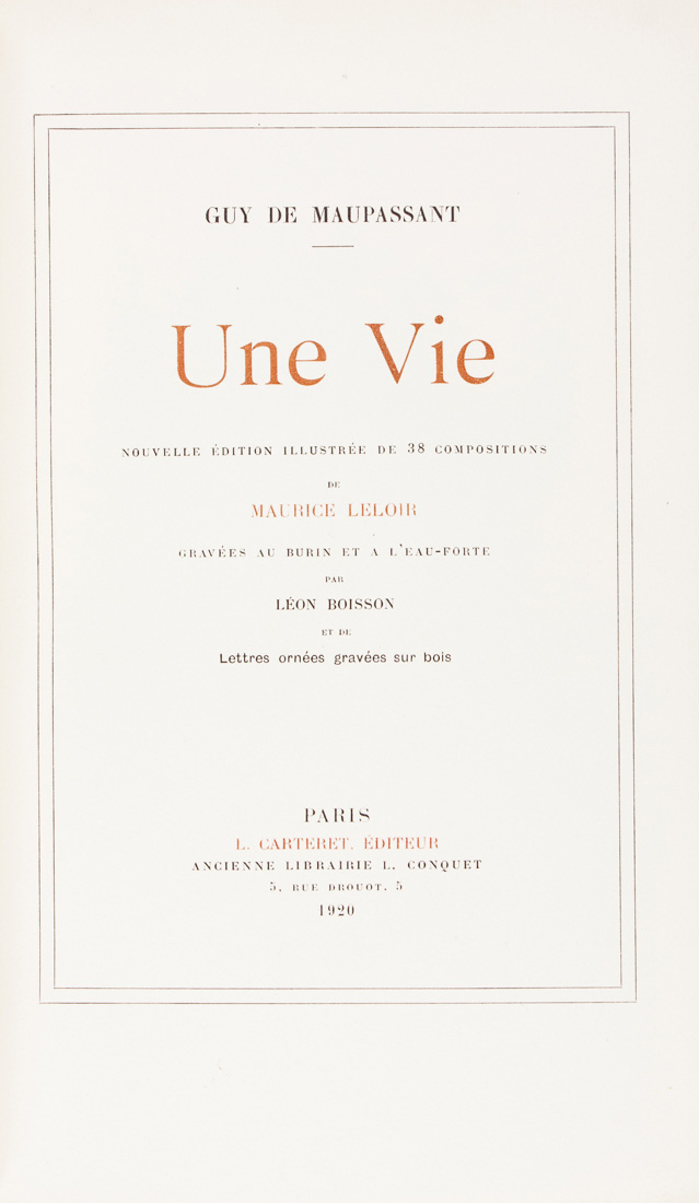 Maupassant Guy (de), Une vie. Nouvelle édition illustrée de 38 compositions de Maurice Leloir gravées au burin et à l'eau-forte par Léon Boisson.