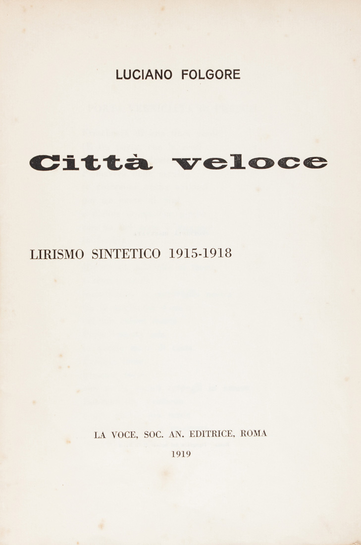 Folgore Luciano, Città veloce.In Roma: Società Editrice 'La Voce',...
