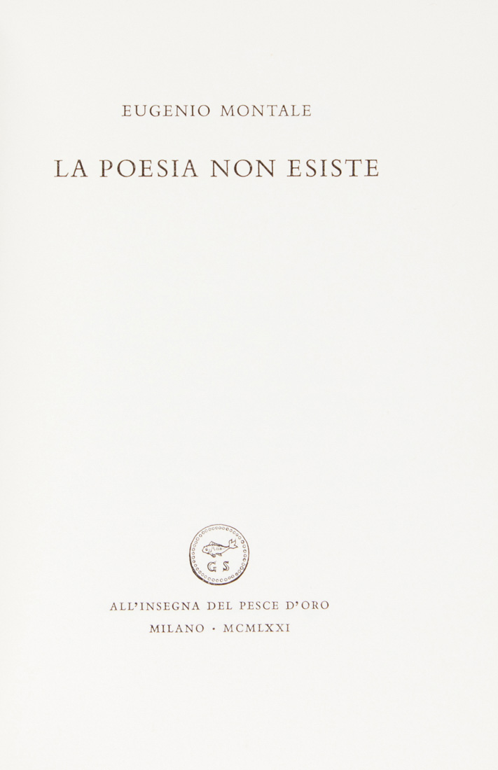 Montale Eugenio, La poesia non esiste.Milano: All'Insegna del Pesce D'Oro,...