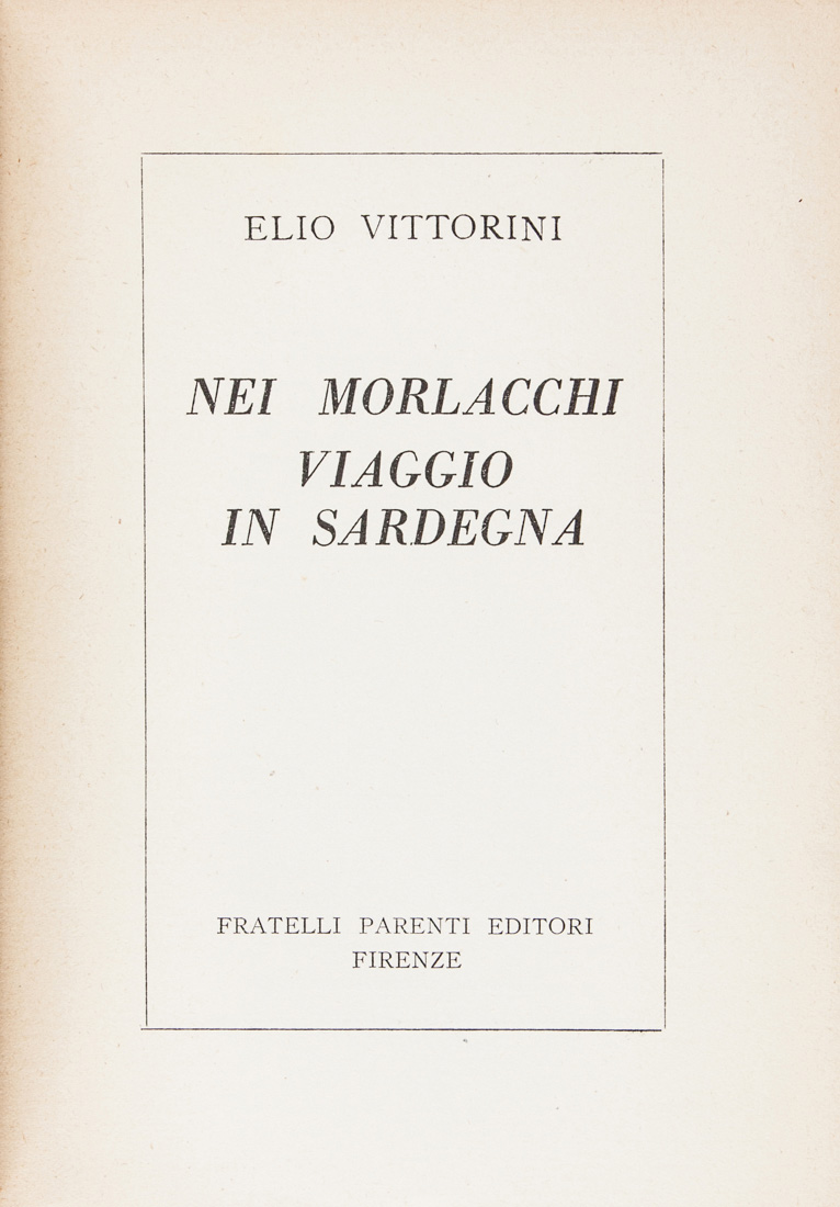 Vittorini Elio, Nei Morlacchi. Viaggio in Sardegna.Firenze: Parenti Editore,...