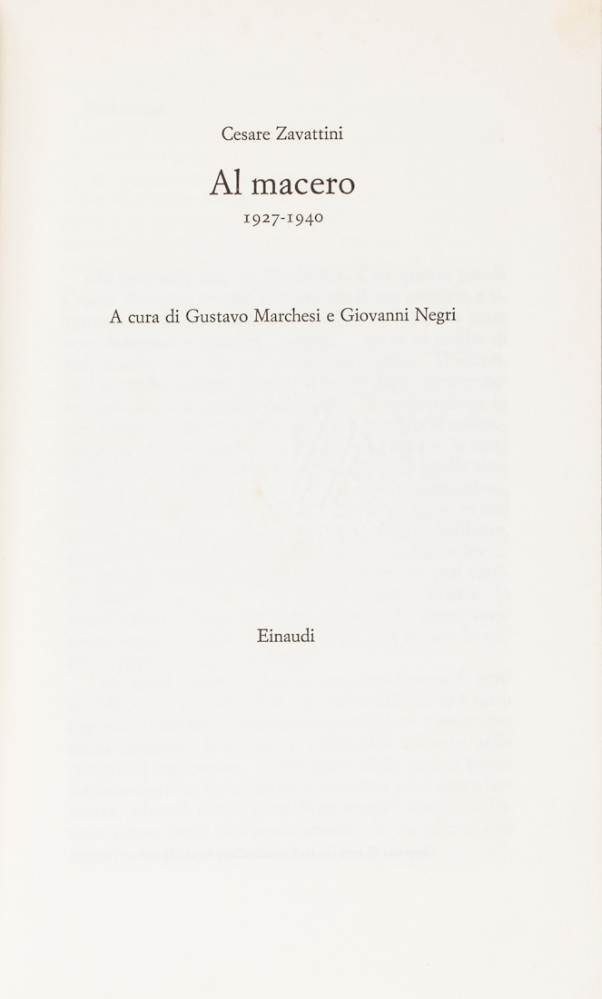 Zavattini Cesare, Al macero.Torino: Einaudi, 1976.In-8° (mm 220x135)....