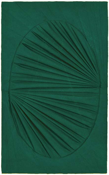 MARIANI UMBERTO Milano 1936 La Forma Celata 2010 vinilico e sabbia su lamina di piombo Misure: 65x40,5 (con cornice 81x51x8) firma data e titolo al retro Bibliografia "Umberto Mariani realtà velate: l'enigma nella piega" Armanda Gori Arte Prato 2011 pag. 39 autentica dell'Autore su foto