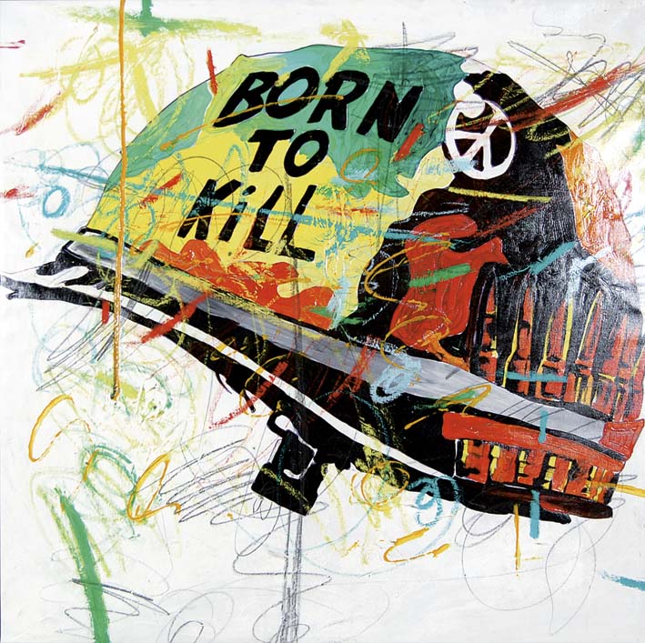 MANERA ENRICO Asmara (Etiopia) 1947 Born To Kill 2004 acrilici e smalti su tela Misure: 94x94 firma data e titolo al retro autentica dell'Autore su foto