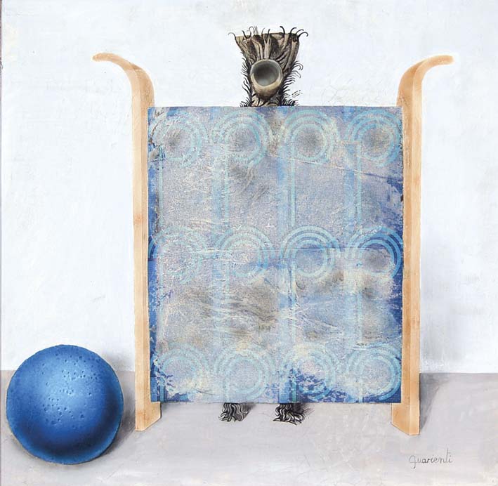 GUARIENTI CARLO Treviso 1923 Rebus Della Poltrona 1974 tecnica mista e collage su tavola Misure: 44x44 firma in basso a destra esposizioni Galleria del Naviglio Milano - etichetta e timbro al retro