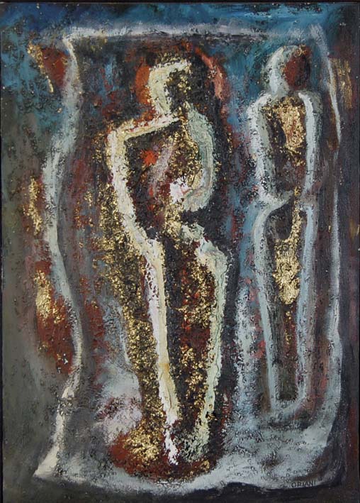 ORIANI PIPPO Torino 1909 - Roma 1972 Presenza Umana E Struttura Morfologica 1967 olio e tecnica mista su tela Misure: 70x50 firma in basso a destra firma data e titolo al retro autentica della Fondazione Pippo Oriani nr. Rep. MV 449 su foto