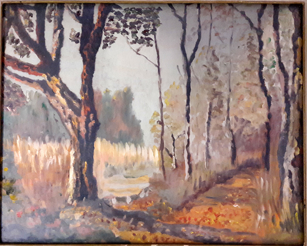 Anonimo "Paesaggio boschivo" - Olio su tavoletta - cm 40x50