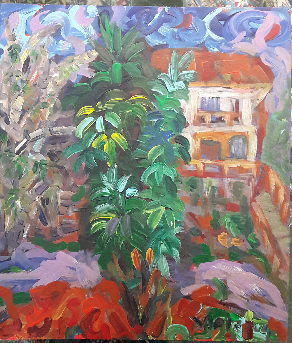Susanna Viale "Case in brasile" - Acrilico su cartoncino intelato - cm 40x35-
