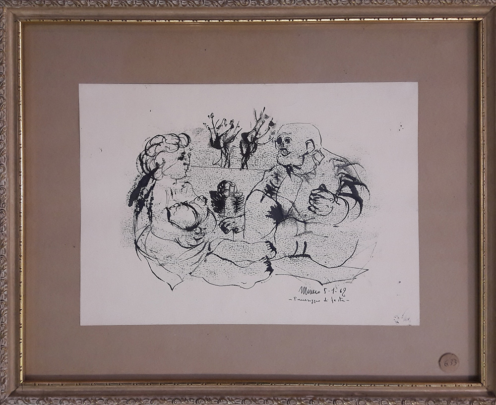 Minero "Pomeriggio di festa" - 1962- China su carta - cm 24x33 - Firma dell'artista, data e titolo in basso a dx
