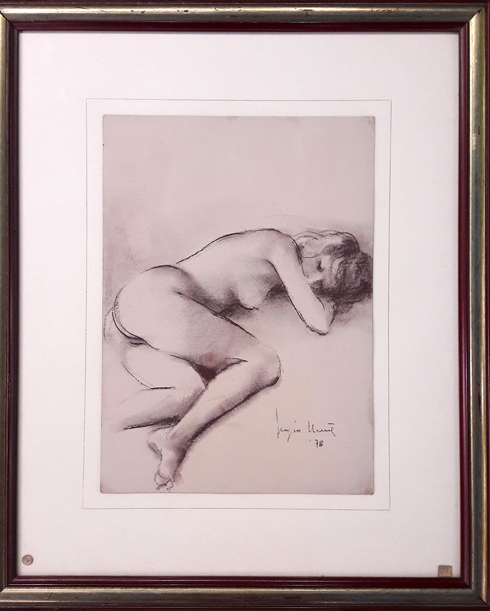 Sergio Unia "Donna dormiente" - 1978 - Carboncino su carta - cm 37x27 - Firma dell'artista e data in basso a dx