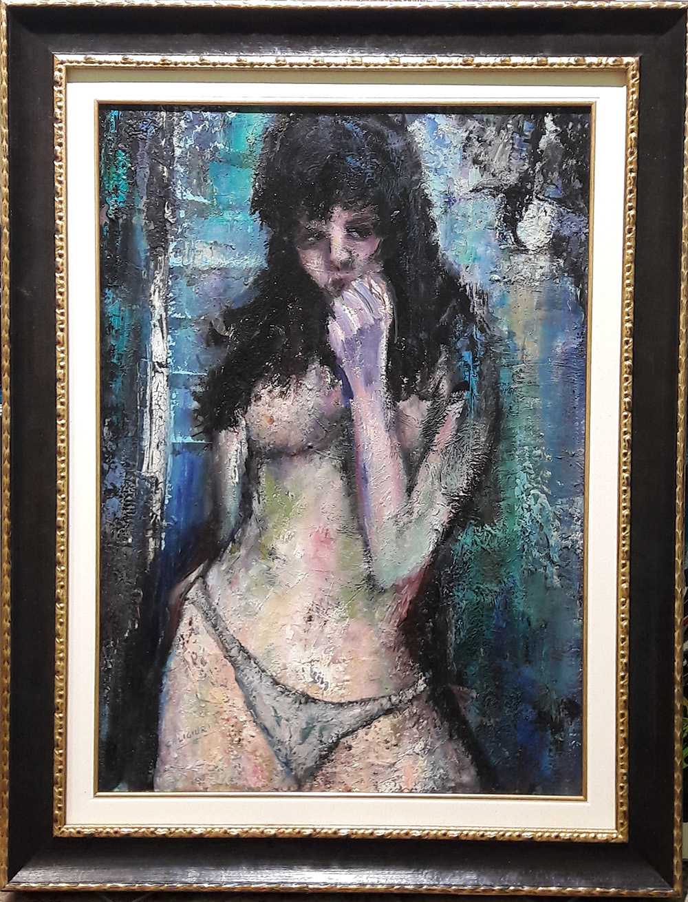 Mario Caligiuri "La modella" - 1966 - Olio spatolato su tela - cm 70x50 - Firma e data in basso a sx