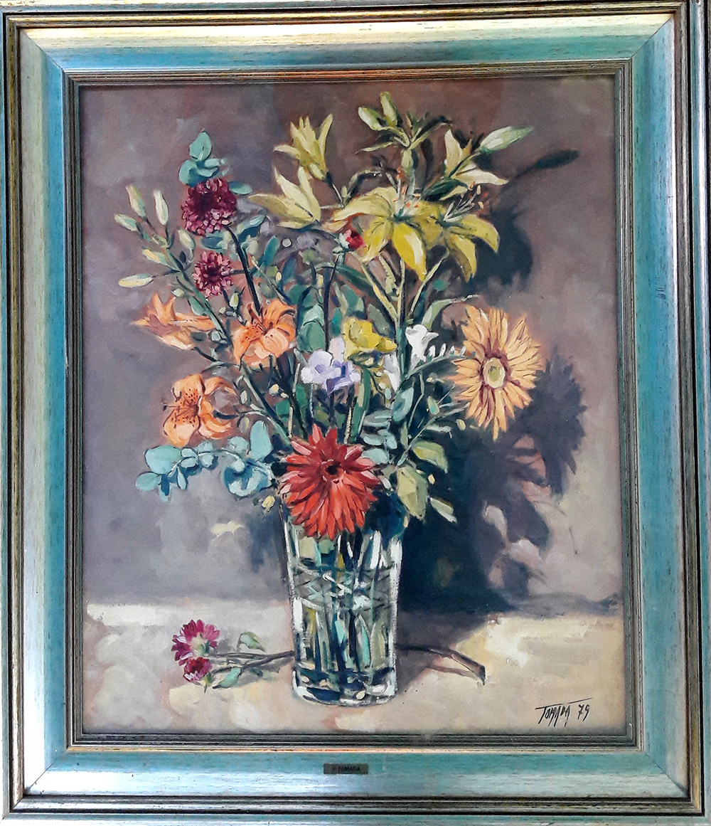 Piergiorgio Tomada "Fiori" - 1979 - Olio su cartoncino telato - cm 60x50 - Firma e data in basso a dx