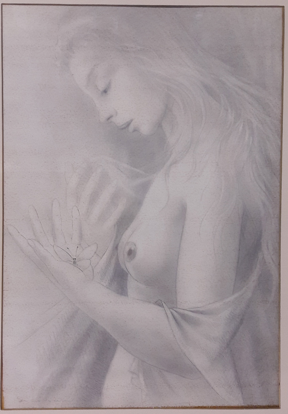Lot 60 | Gemma Vercelli "La farfalla" - Disegno a matita su carta - cm 51x36