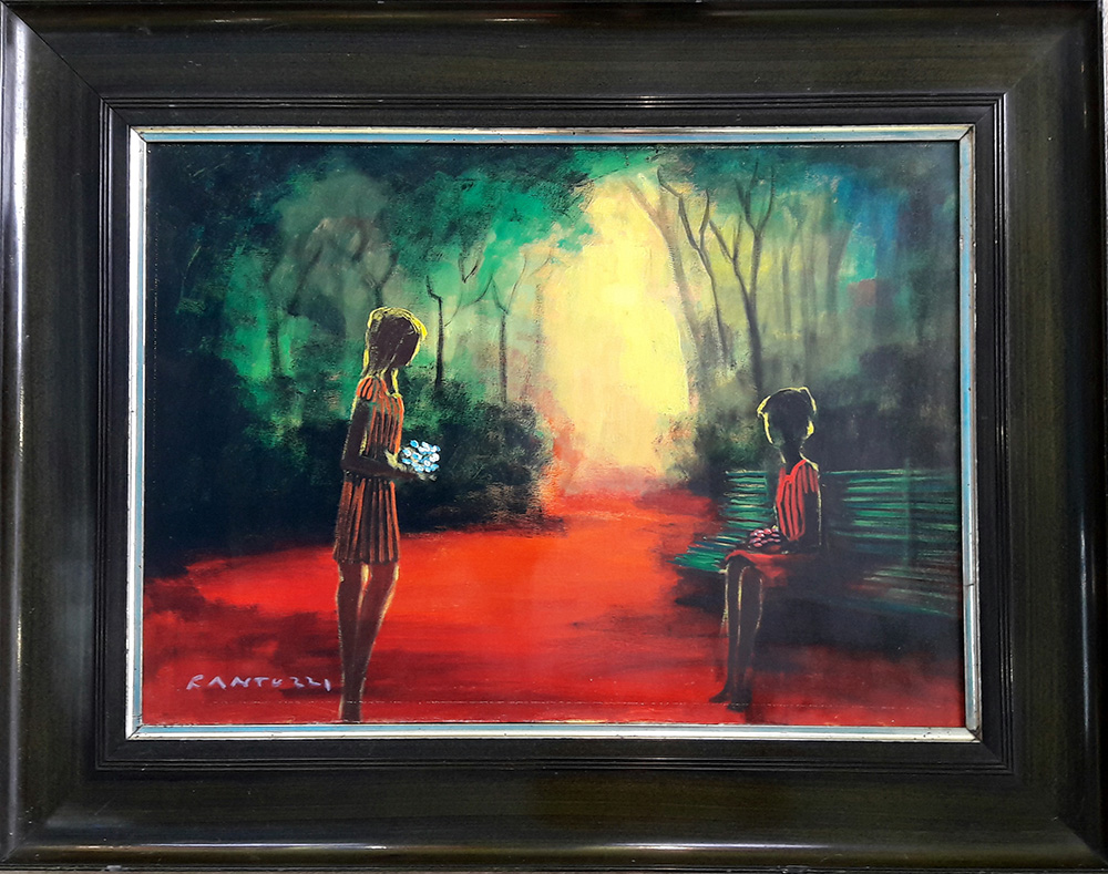 Eliano Fantuzzi "Figure nel parco" - Olio su tela - cm 50x70 - Firma dell'artista in basso a sx e al retro - Autentica dell'artista su foto