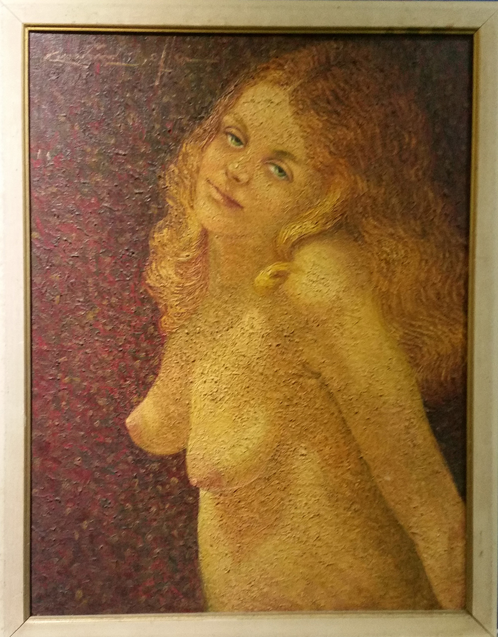 Giovanni Boffa "Sbarazzina" - 1971 - Olio su tela - cm 65x50 - Firma dell'artista in alto a sx - Timbri e etichetta Galleria Accademia TO al retro