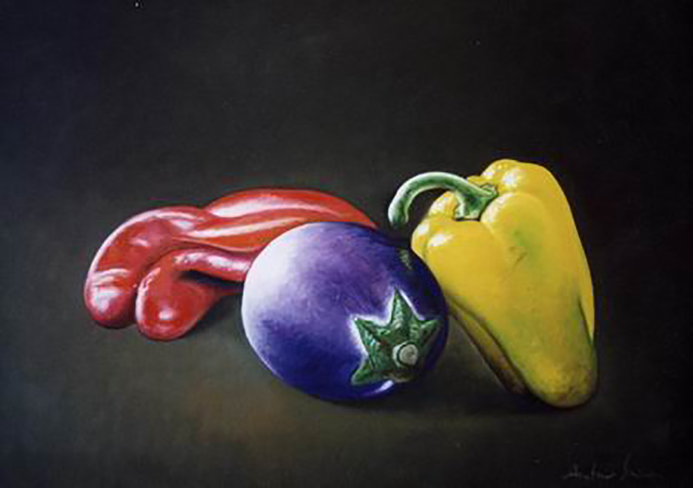 Antonio Sciacca "Peperoni" - Olio su tela - cm 50x70 - Firma dell'artista in basso a dx - Autentica dell'artista su foto