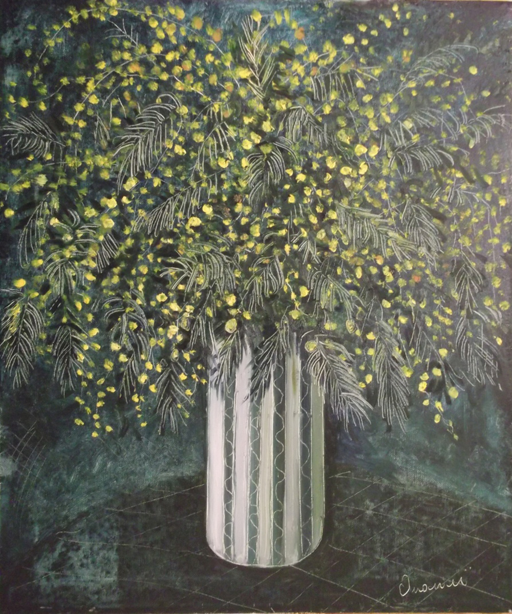Clizia Omarini "Vaso di mimosa" - Olio su tela - cm 60x50 - Autentica dell'artista su foto
