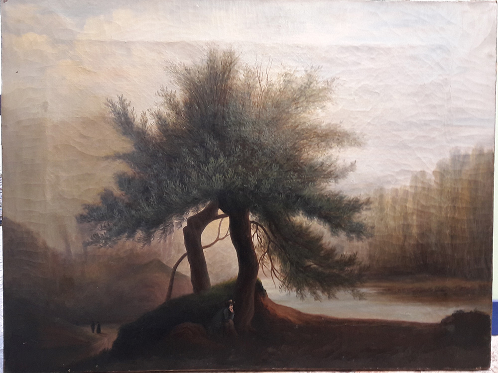 Lot 176 | Scuola nordeuropea "Paesaggio lacustre con personaggio" - 1867 - Olio su tela...