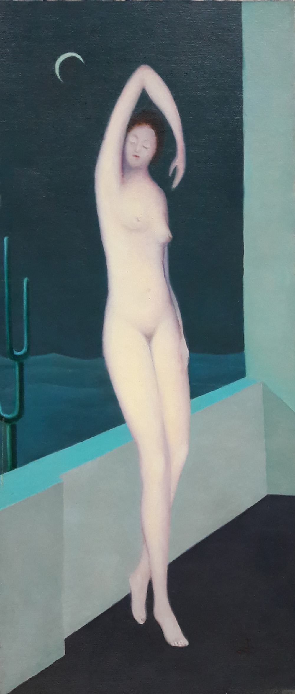 Silvio Fedele "Nudo sotto la luna" - 1985 - Olio su tela - cm 80x35 - Autentica e provenienza Galleria Accademia TO