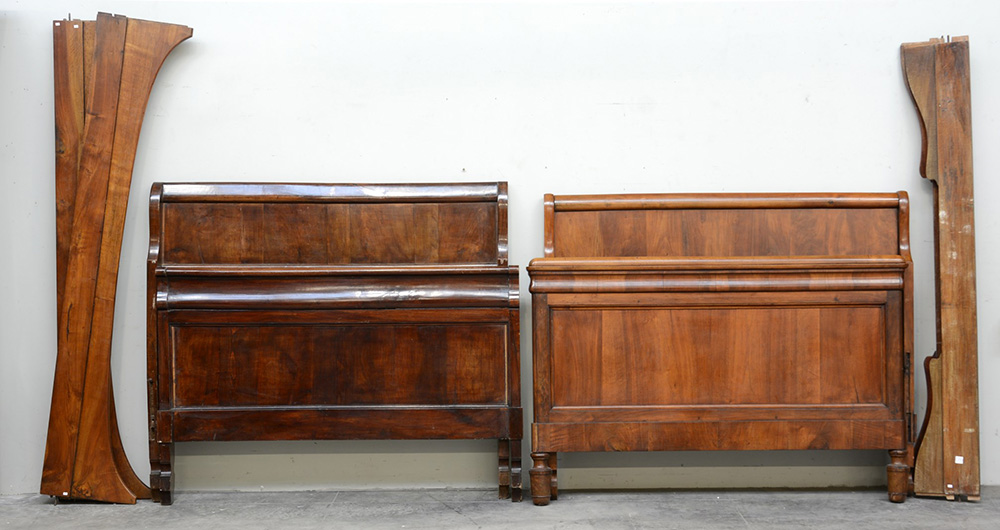 Lotto composto da due letti ad una piazza e mezza con montanti sagomati. Sec. XIX (completi di sponde)
