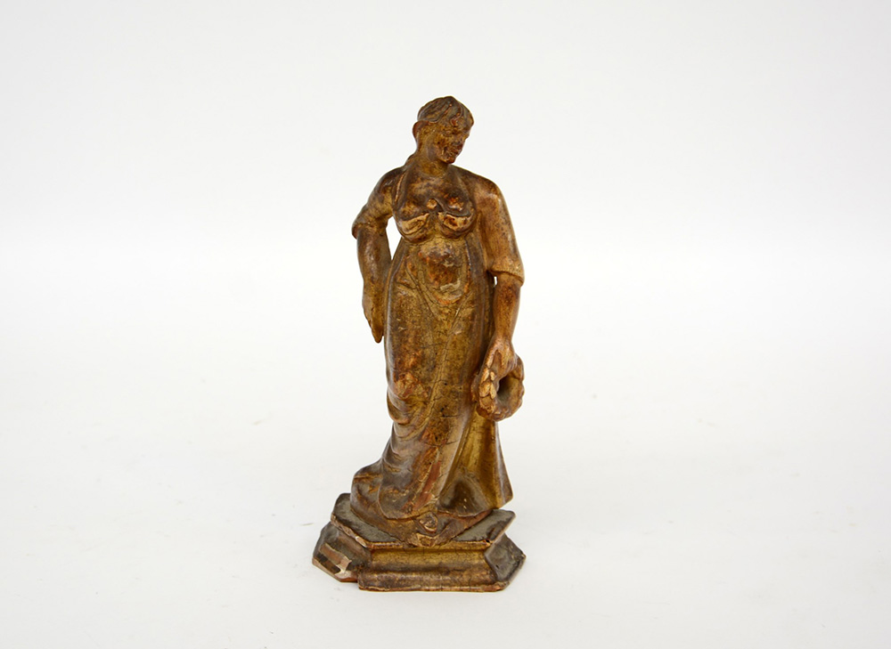 Arte del Sec. XIX "Vestale" piccola scultura in legno intagliato e dorato