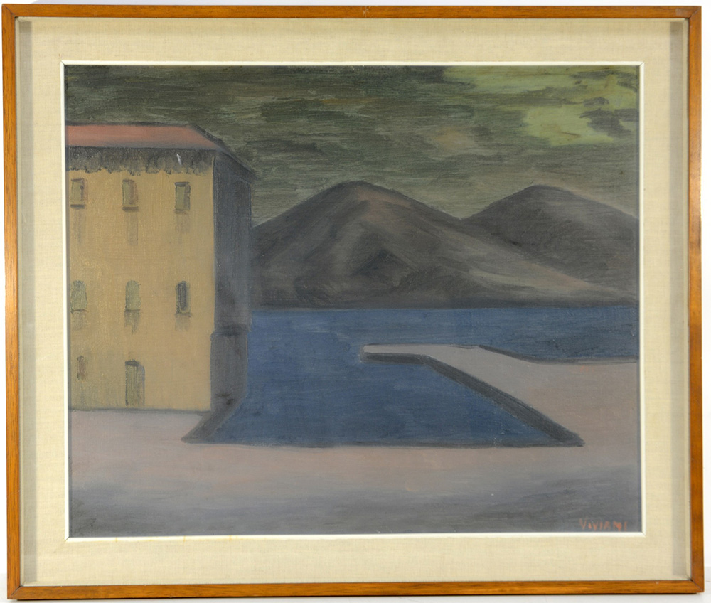 Viviani Vittorio. "Casa a Iseo" olio tela (cm 60x73) firmato in basso a destra, in cornice (lievi difetti)