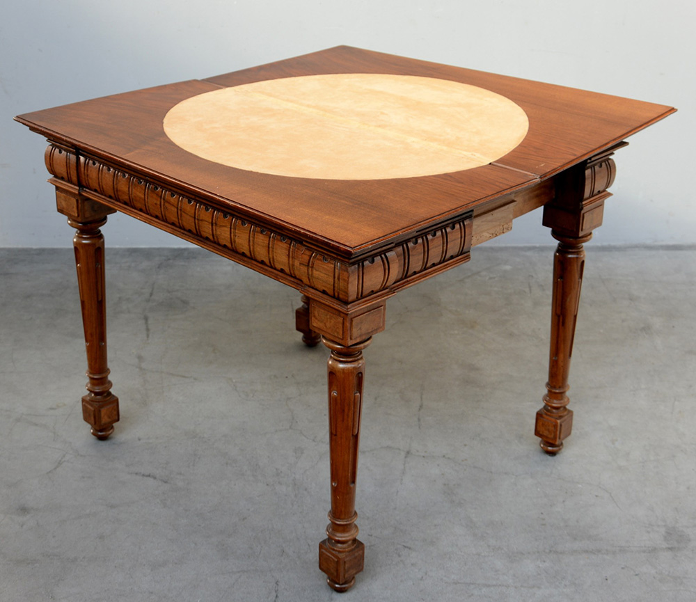 Lot 63 | Tavolo da gioco con fascia intagliata a motivi geometrici. Gambe scanalate....