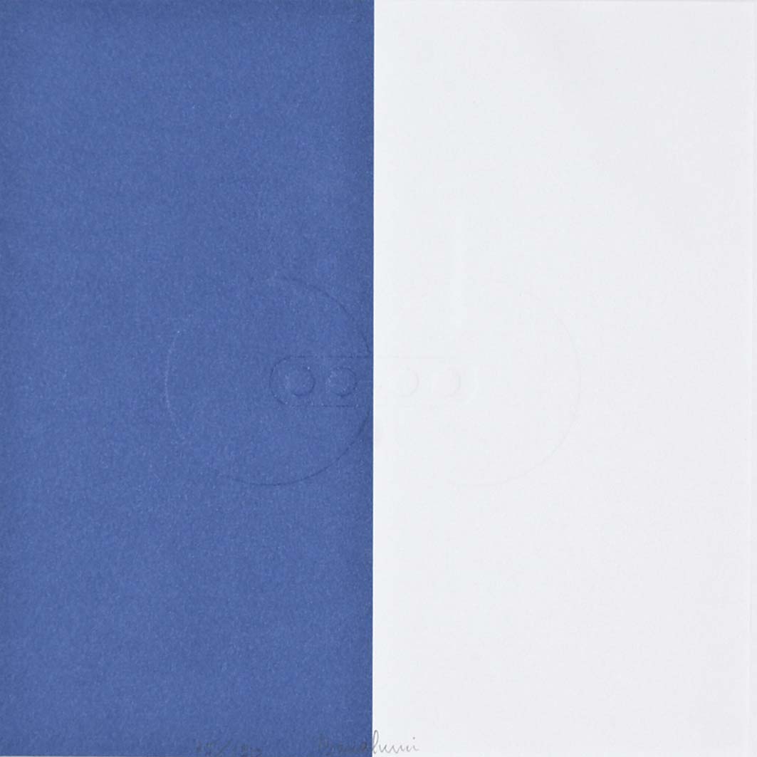 BONALUMI AGOSTINO Vimercate 1935 Blu Bianco cartone estroflesso su carta serigrafata es. 92/150 Misure: 22x22 firma e tiratura in basso al centro