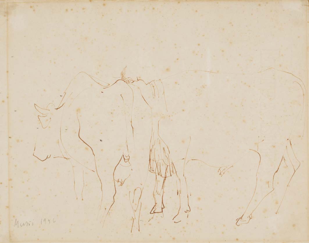 MUSIC ZORAN Gorizia 1909 - Venezia 2005 Buoi 1946 disegno a china su carta Misure: 22x28,5 firma e data in basso a sinistra Bibliografia Zoran Music dipinti 1946 - 1952 a cura di Giuseppe Mazziarol Galleria l'Affresco Montecatini 1988 - l'opera presenta diffuse macchie di umidità